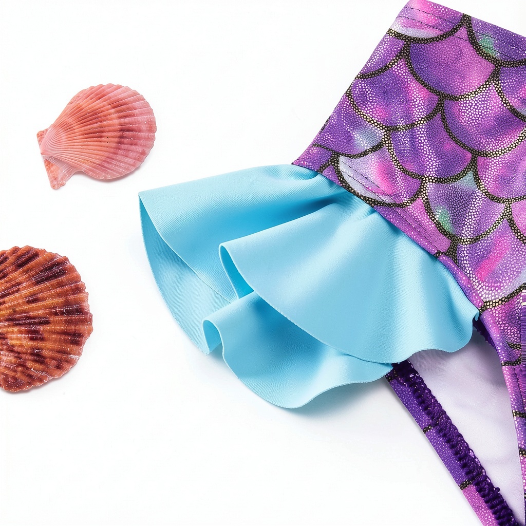 - Mermaid print and ruffle details on the bottom for a playful, stylish look