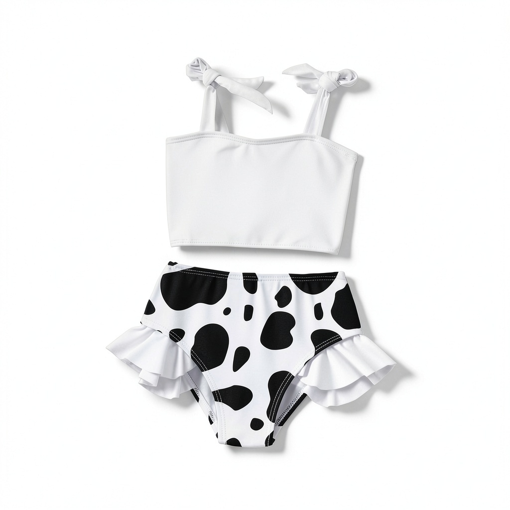 Toddler Girl Ruffle Bikini Set Polyester Cow Print Swimwear-0