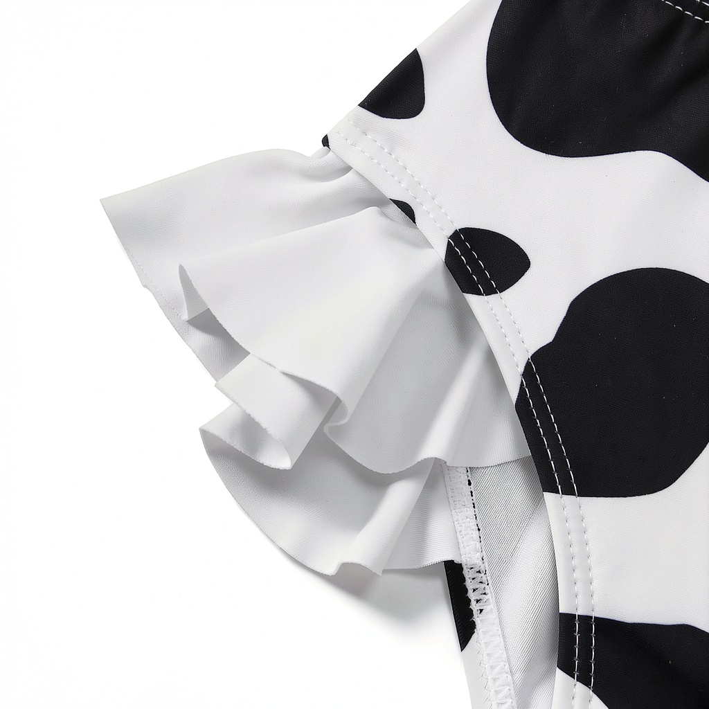 Toddler girls swimsuit set with ruffle shorts and cow dot print